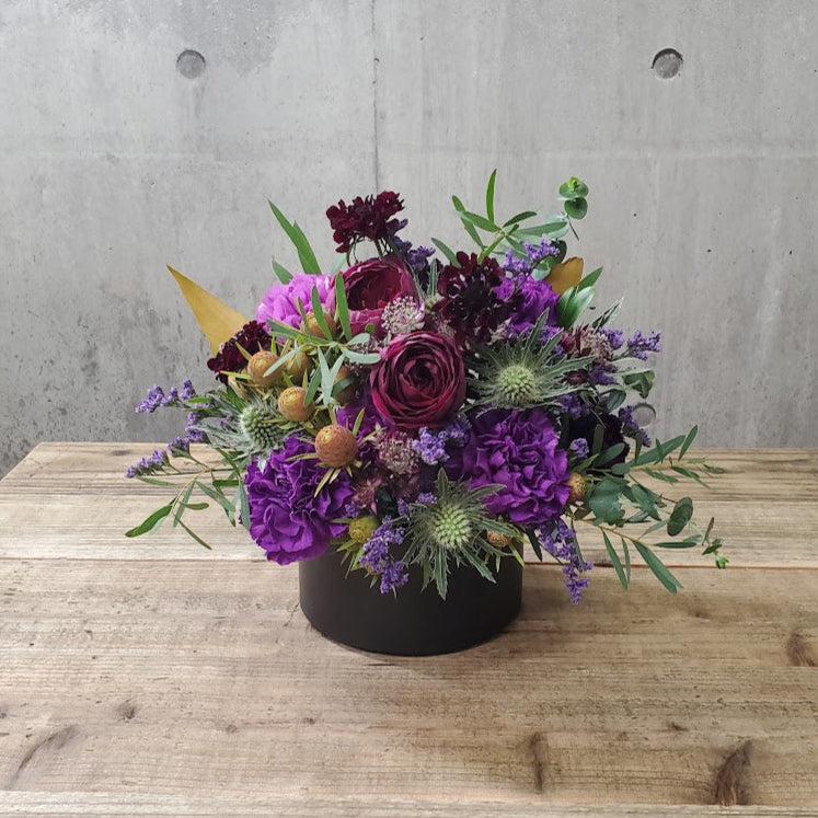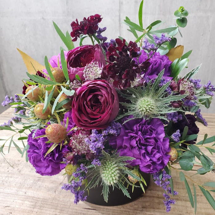 ブラックの花器とムーンダストの組み合わせはとてもシックでエレガント。