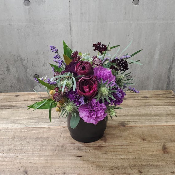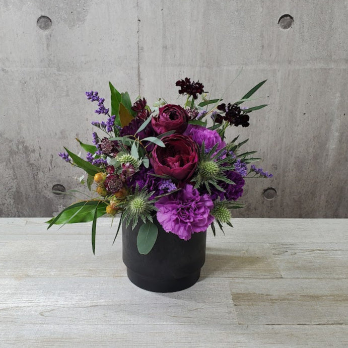 ブラックの花器とムーンダストの組み合わせはとてもシックでエレガント。
