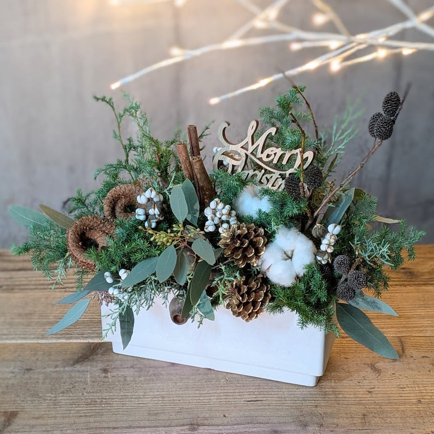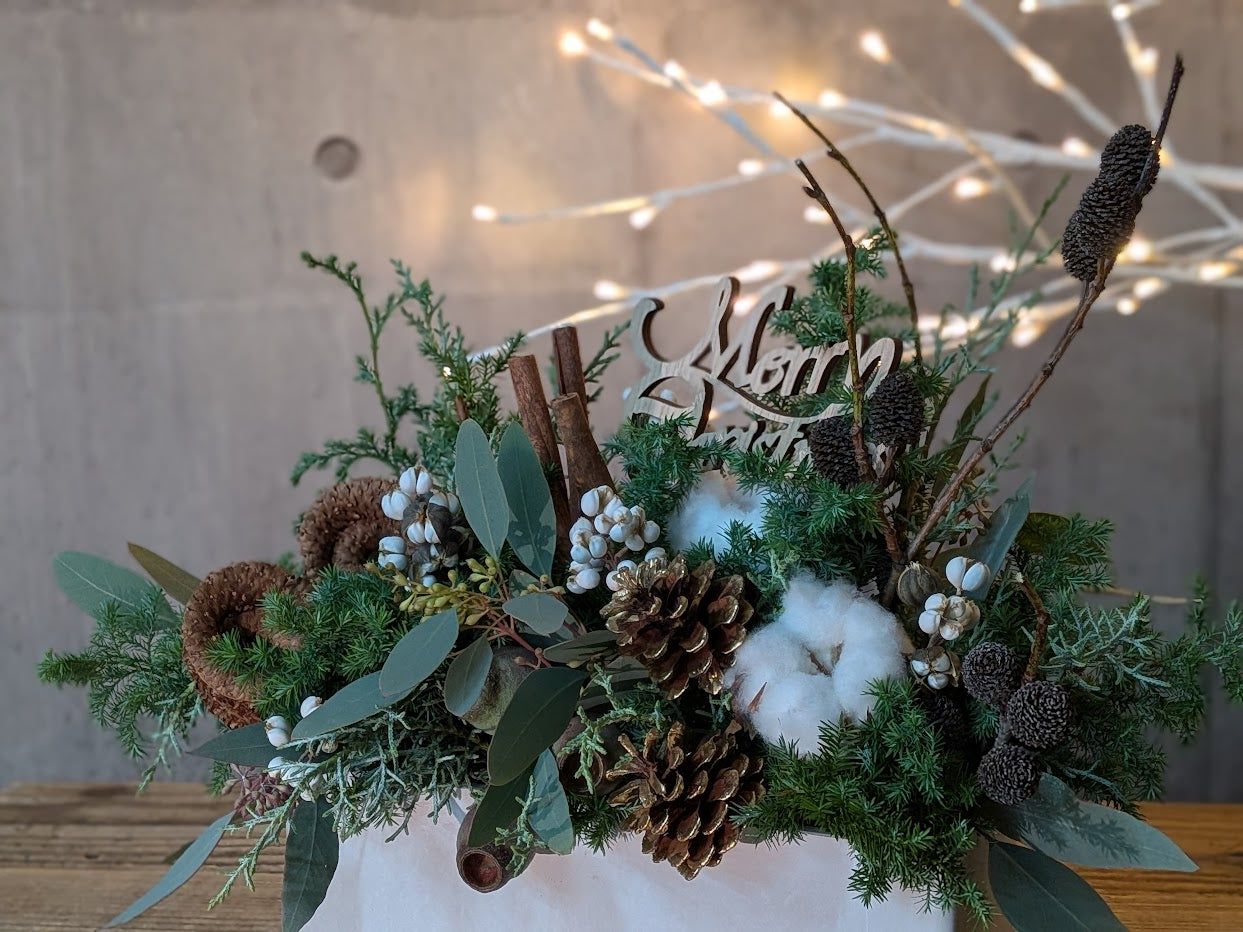 針葉樹の爽やかな香りに包まれる、ナチュラルなクリスマスアレンジメント。