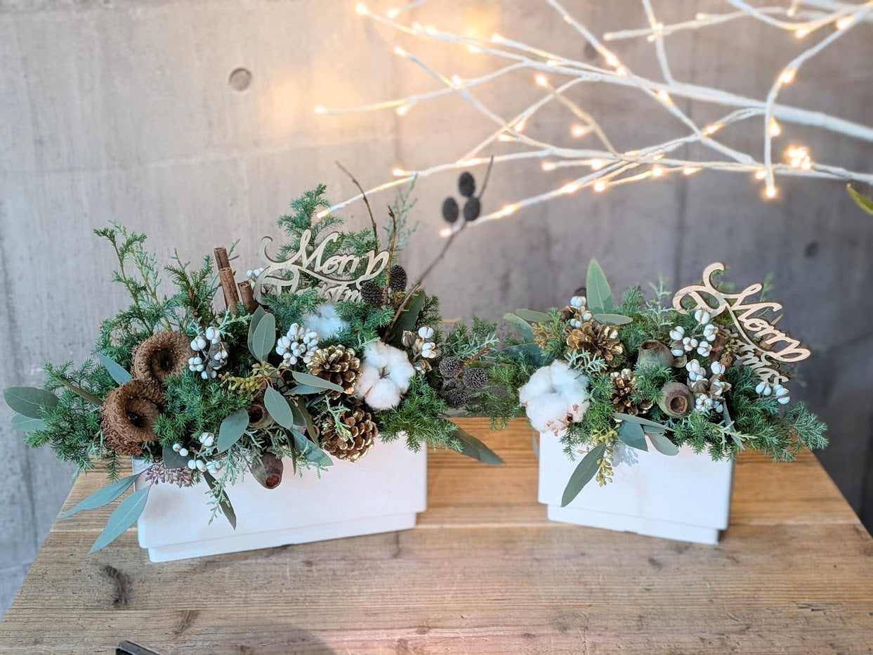 新鮮なグリーンや木の実、コットンフラワーなどを使用し、見た目も香りも楽しめます。