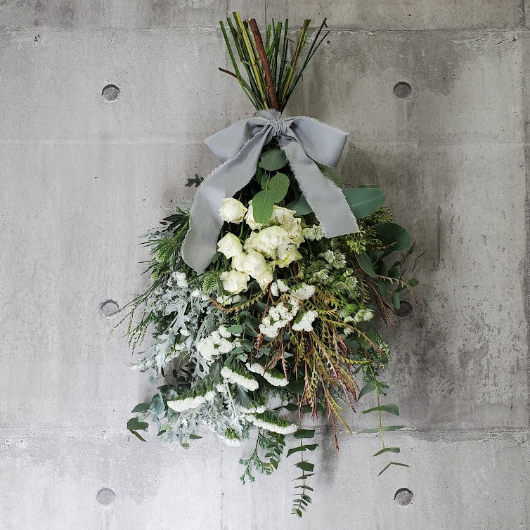 生花を束ね植物の香りを感じながら生花からドライへ変化していく様子を長い期間楽しめます。