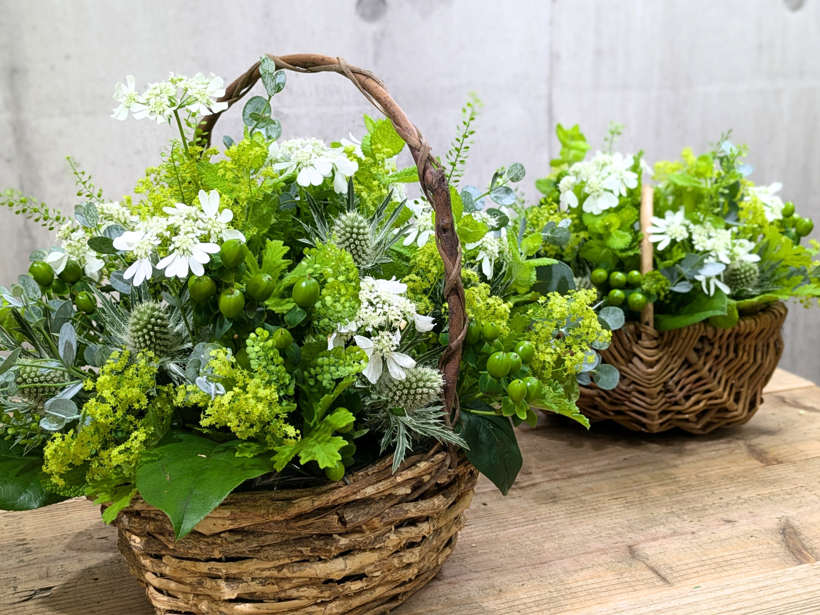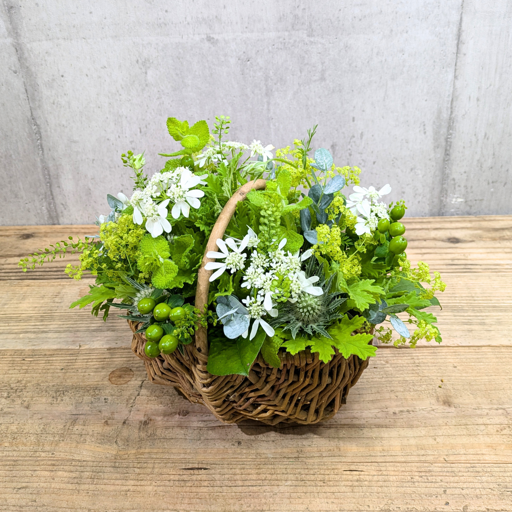 みずみずしいハーブをふんだんに使ったバスケットアレンジメントです。