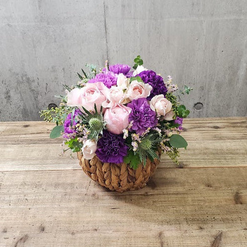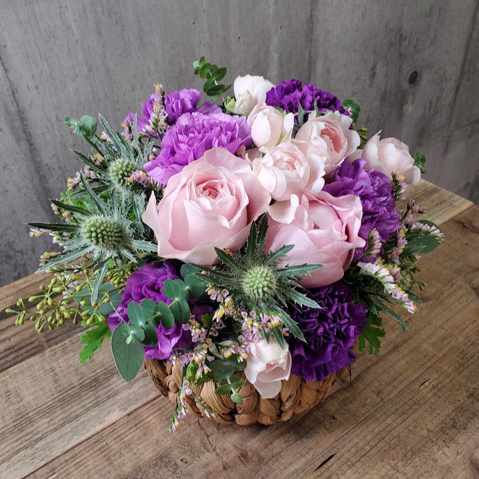 【メインフラワー】ムーンダスト、スターチス、スプレーバラ、ゼラニウムなど